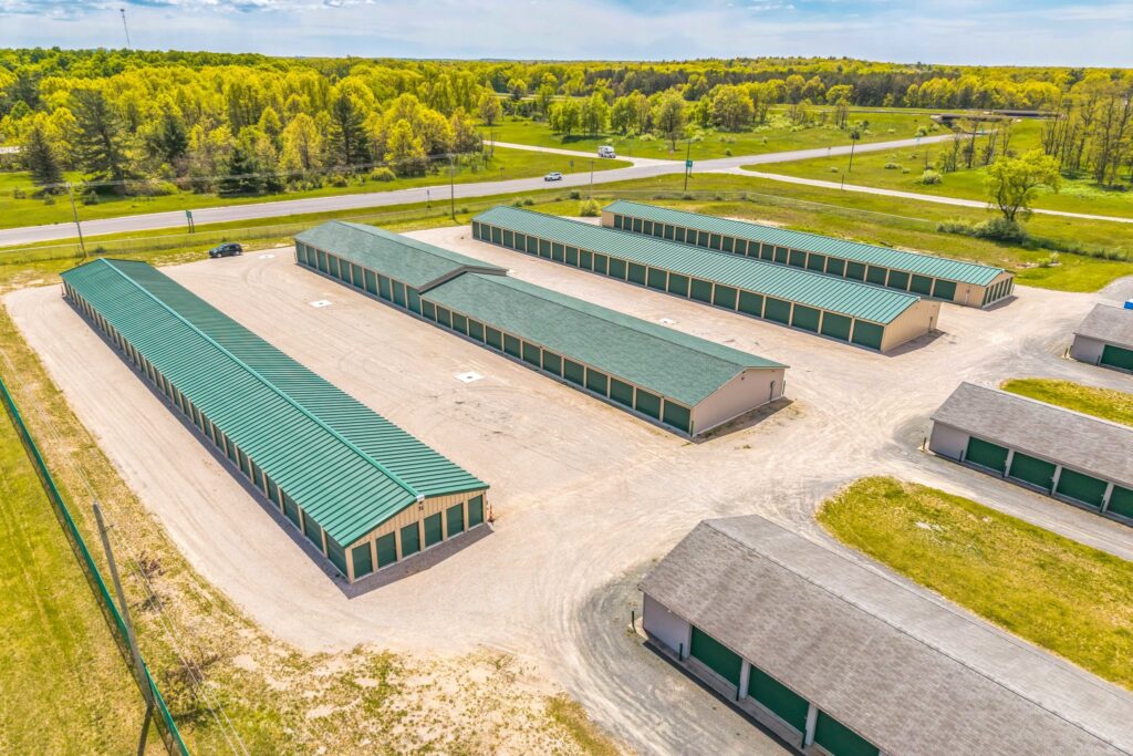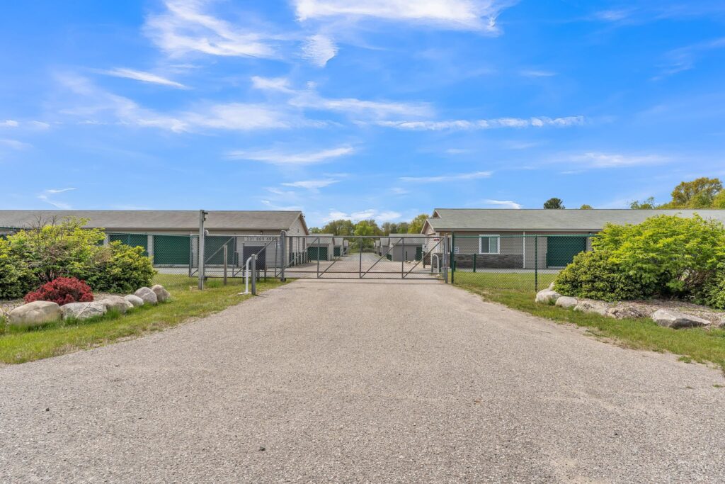 The property offers a wide unit mix, from 5×10 units to 12×40 spaces, accommodating traditional self-storage customers as well as those seeking enclosed vehicle and boat storage—particularly relevant given the area’s proximity to Lake Michigan and nearby vacation destinations.